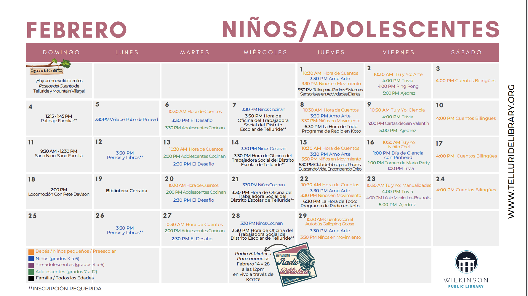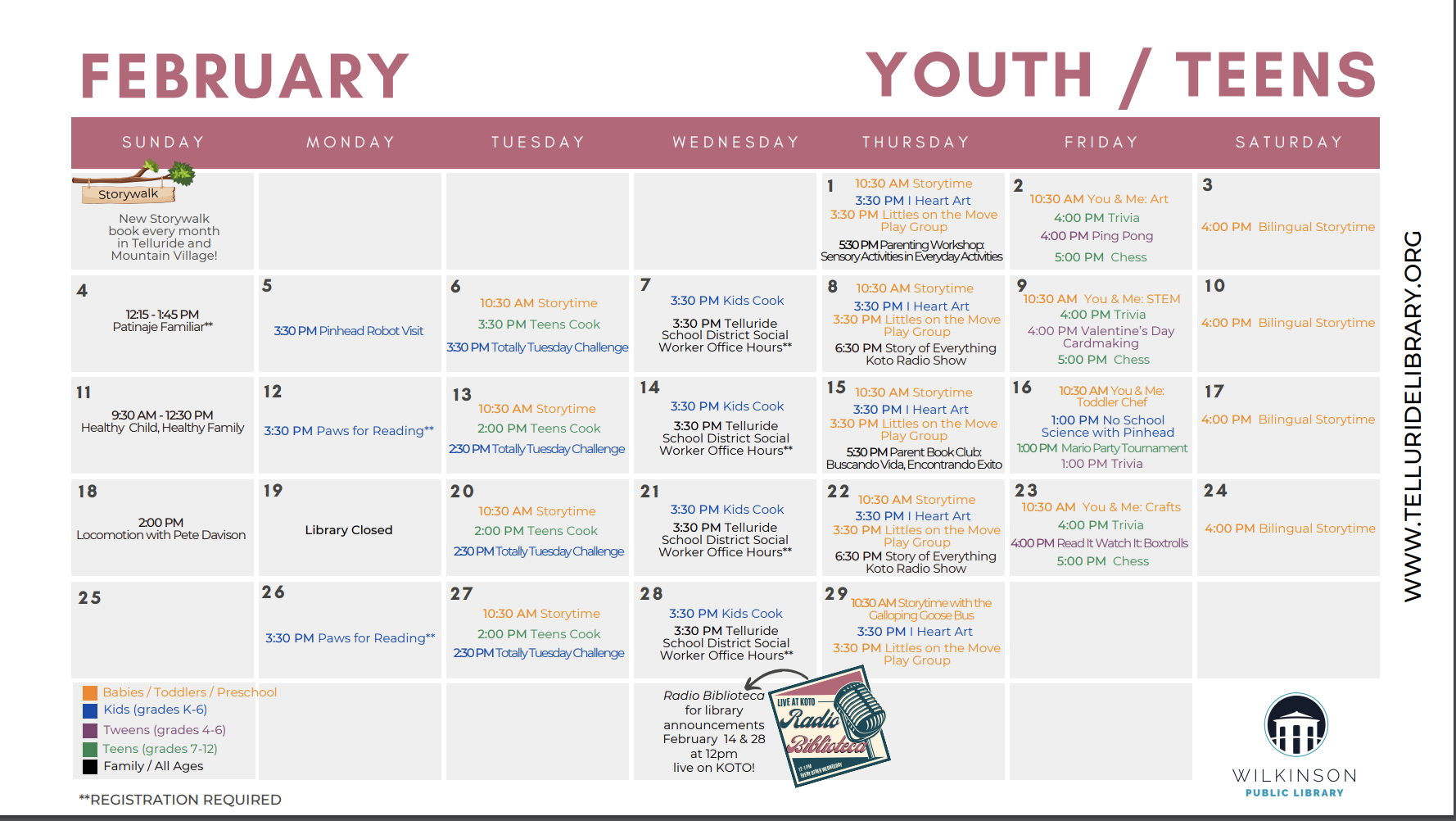 10. Wilkinson Library After School Programs for February including No School Science event on February 16th and Valentine’s event for all on February 18th.